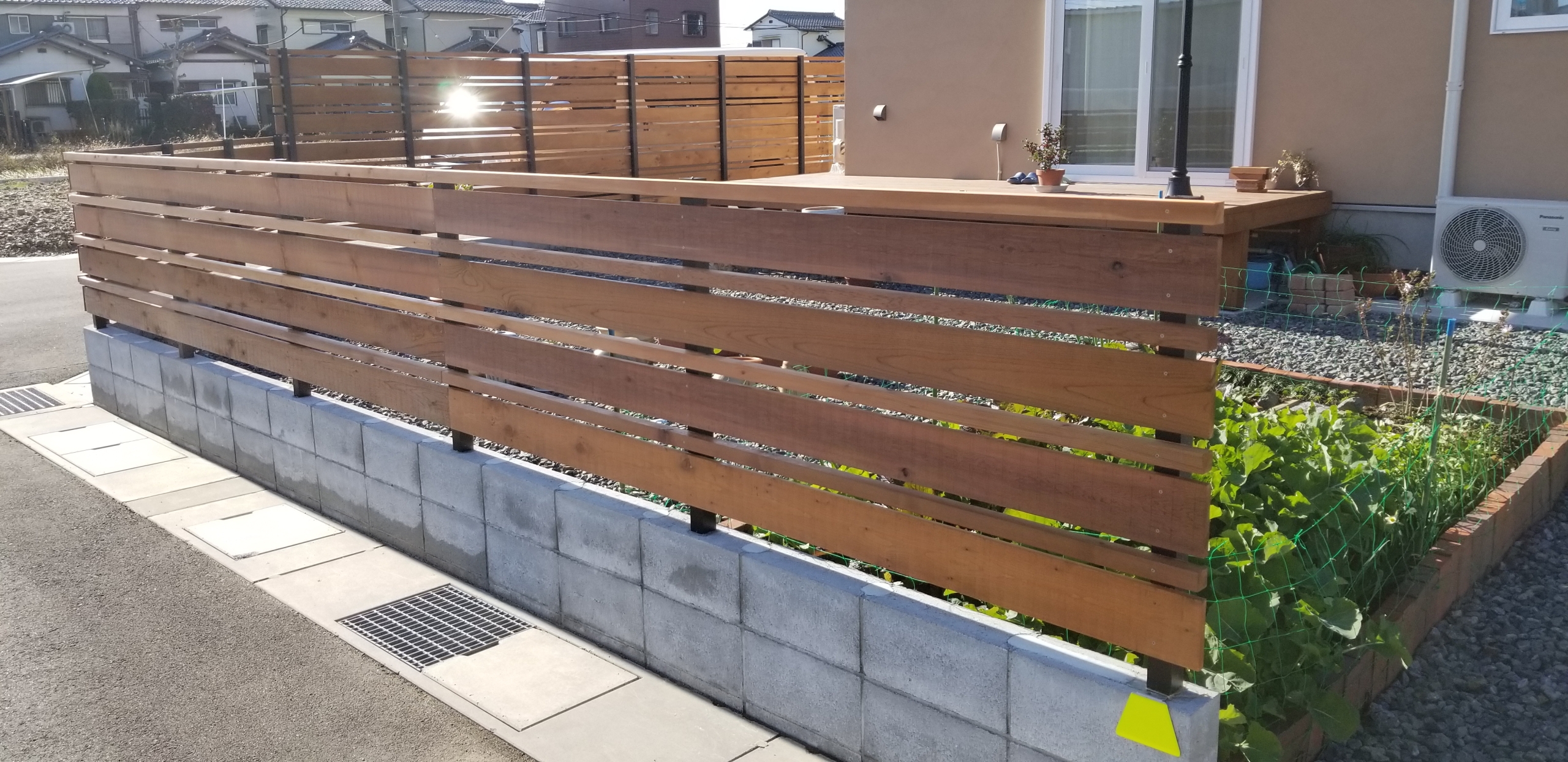 既存フェンスより少し背の低い木フェンスを作りました‼️