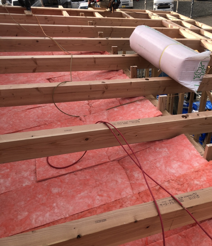 現在施工しているのは200厚さの断熱材なのですが、この時点で大工さんが隙間がないよう丁寧に施工しています。