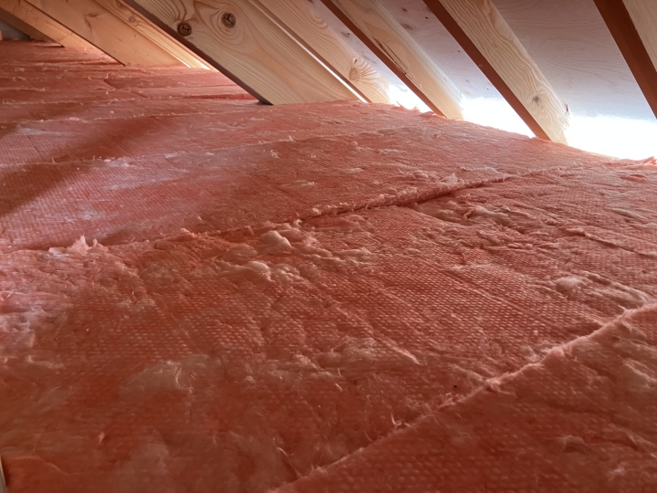 グラスウールは、繊維の隙間に閉じ込められた空気によって熱伝導を抑えます。