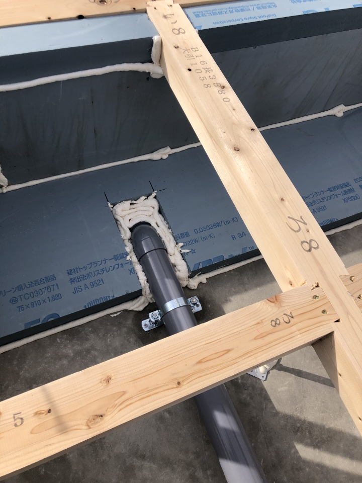 もちろん、配管周りも断熱欠損にならないよう、しっかり発砲ウレタンを施工していきます。