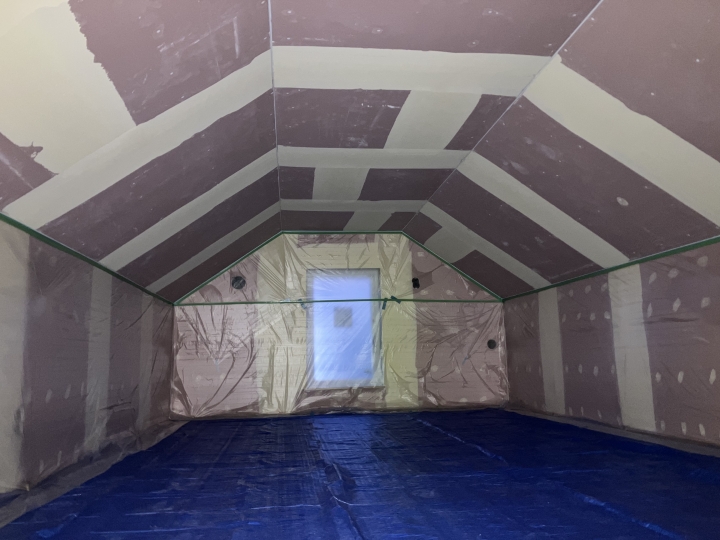 壁や床に吹き付けたダイアトーマスが付かないように厳重にしております!