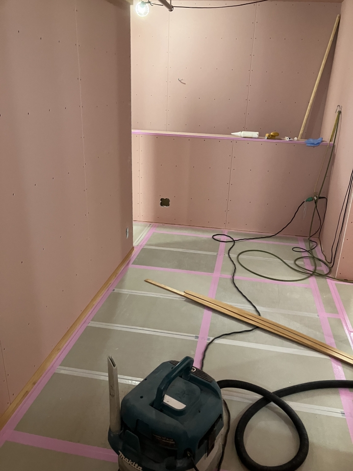 それもなく、また壁や天井に使用するプラスターボードの施工を行うと、どうしても切ったり削ったりで