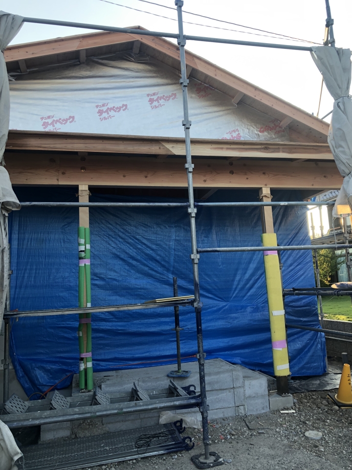 こちらは作業中に傷をつけないよう、上棟の時点で養生を行っています。