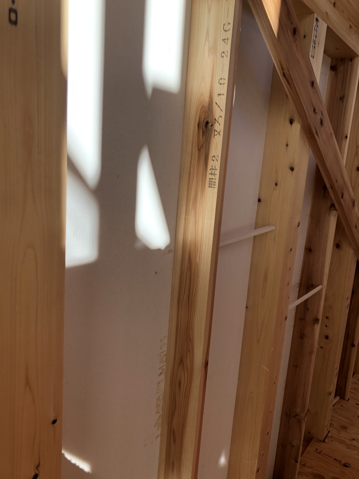 構造用面材の裏側から釘が貫通していないか、しっかりチェックしていきます。