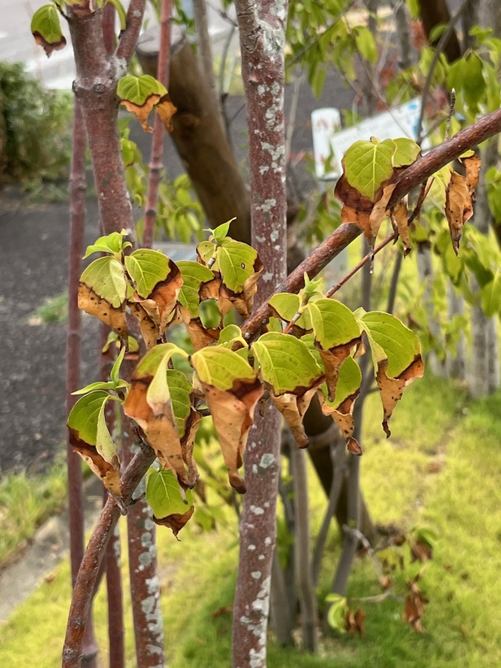 ヤマボウシも同じような状況でした。暑さもあと少し。何とか乗り切って欲しいです。