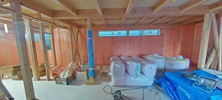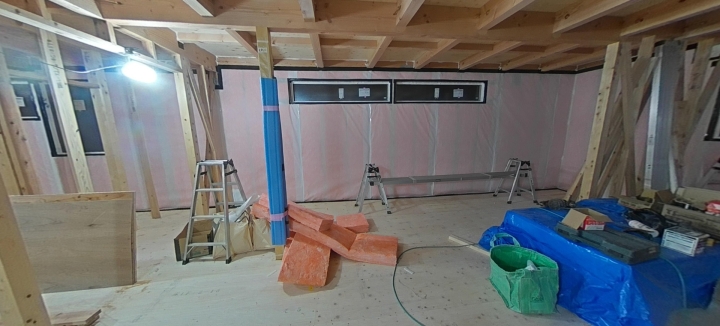 こちらは昨日の朝の様子。断熱材がだいぶん減っていて工事が順調に進んでいる様子が確認出来ます。