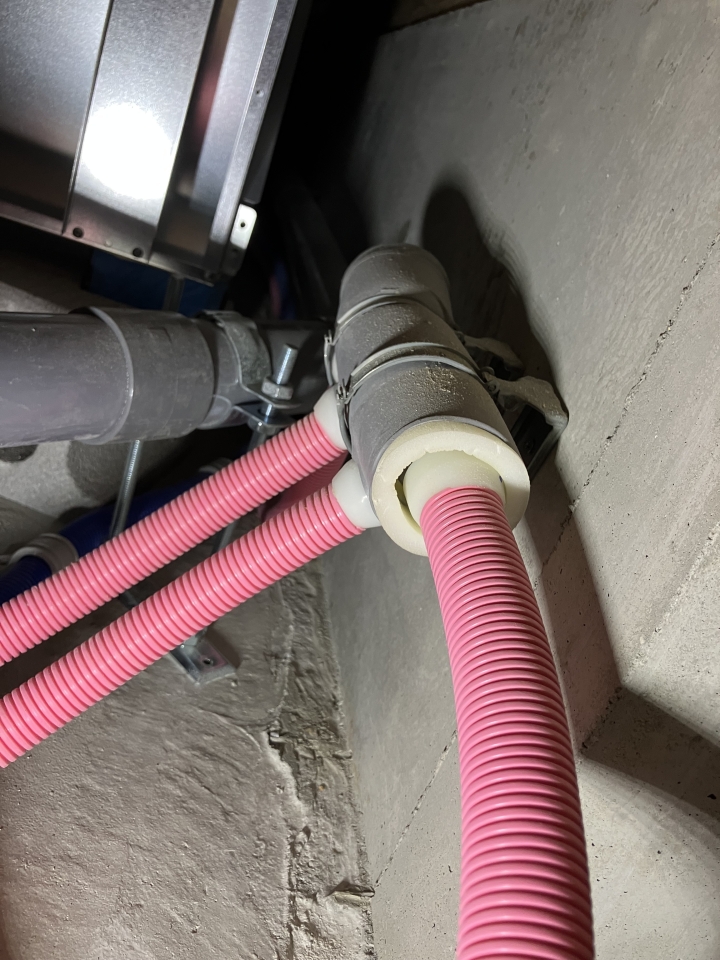 ヘッダーとは、複数の配管を連結し、各場所に分配しています。