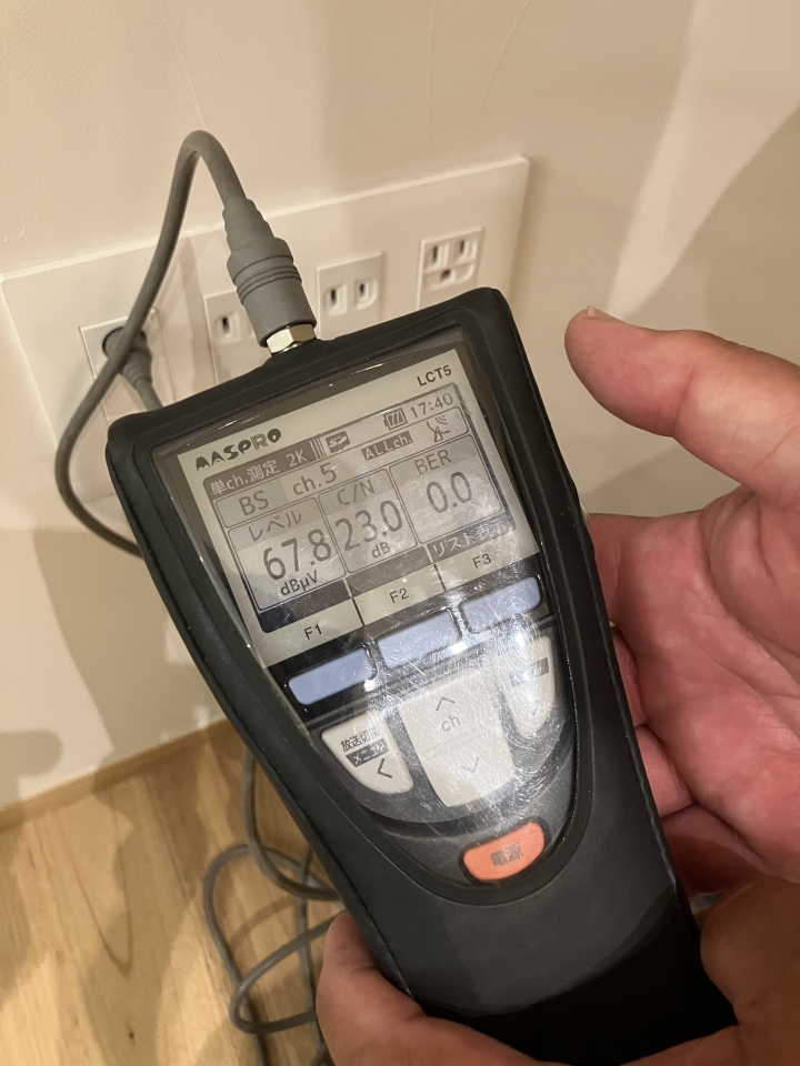 こちらの現場はTVアンテナ工事も行ったので受信レベルの確認も重要項目の一つです。