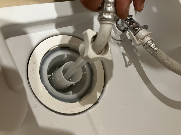給排水設備では湯水を流し、排水に問題ないかを確認します。