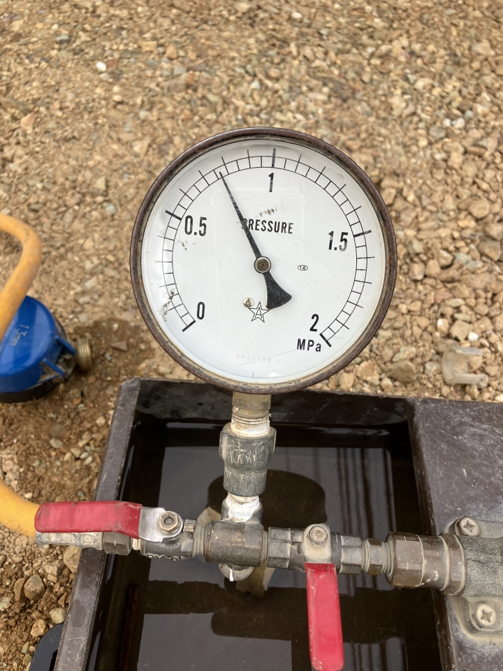 給水管に水圧をかけてテストをしております。