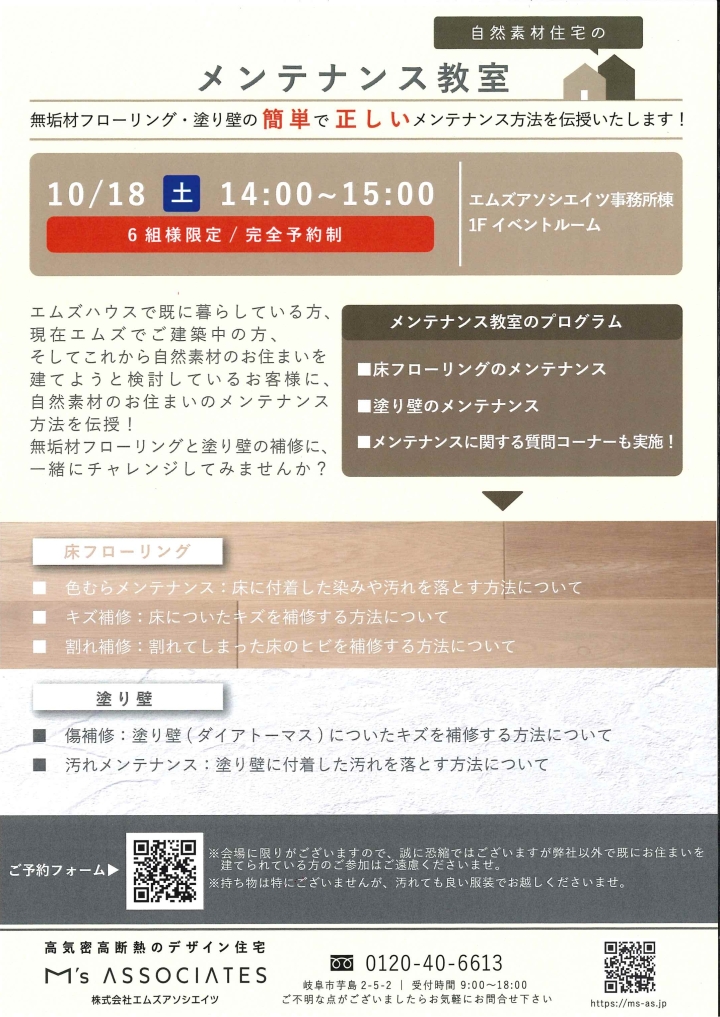 これから自然素材のおうちを建てたい方も、すでにお住まいの方も、「もっと家を大切にしたいな」と思う方ならきっと役に立つ内容です。