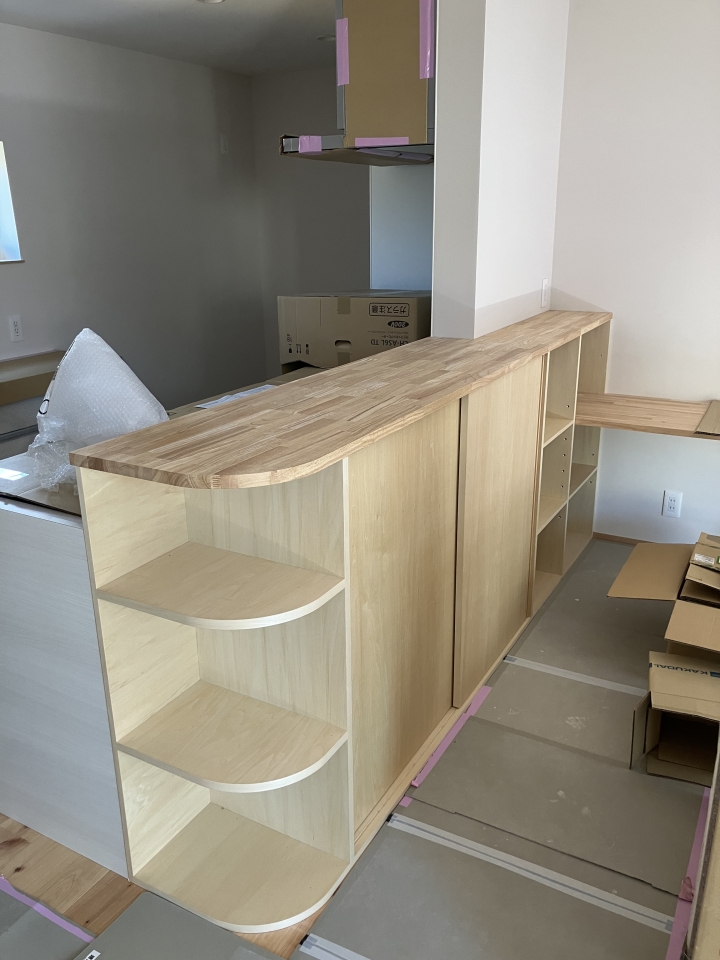 先日、内部ではついにキッチンの設置工事が行われました。