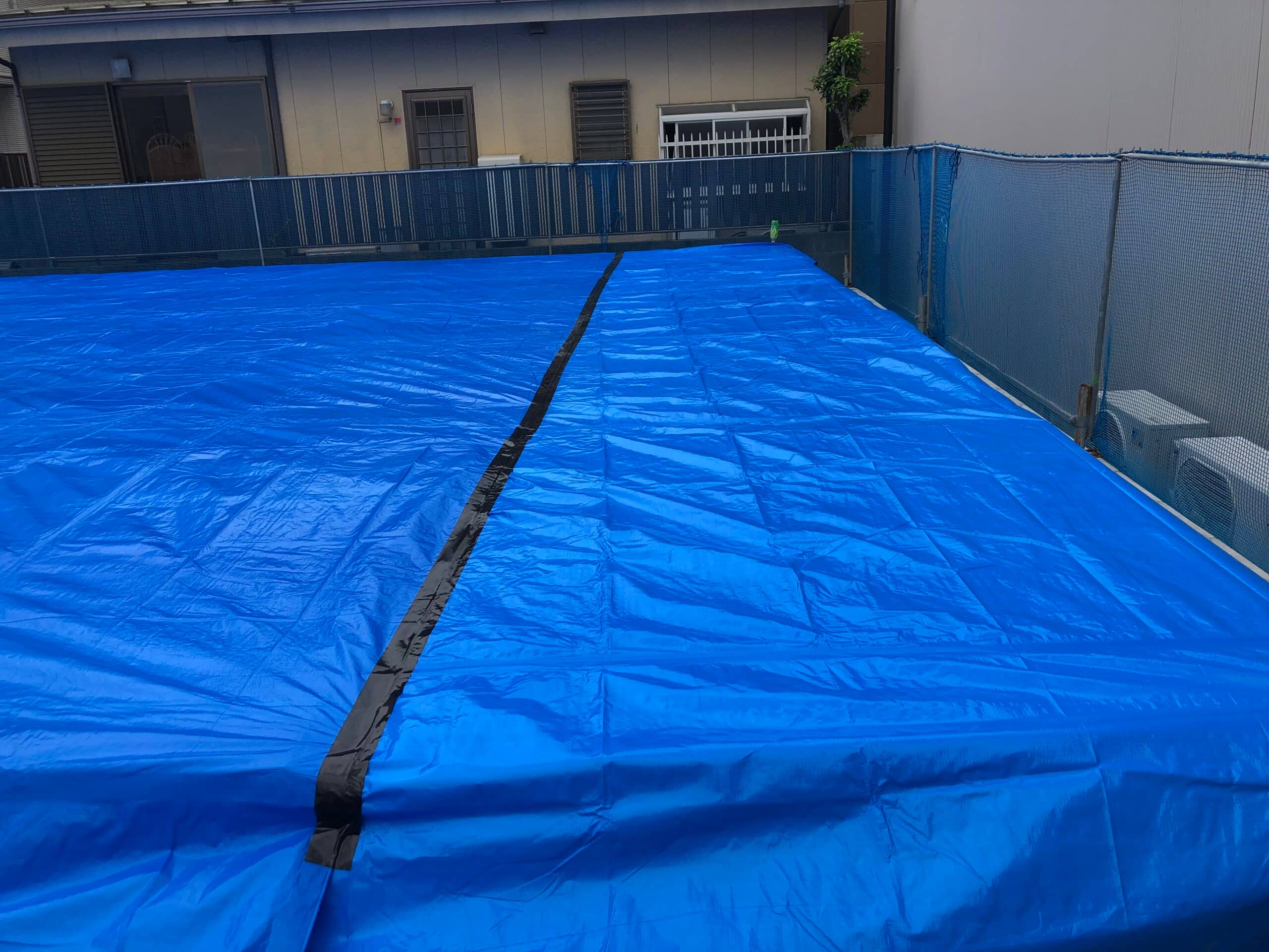 こちらが二つ目の、先ほどの透明な養生シートの上から施工する養生となっています。