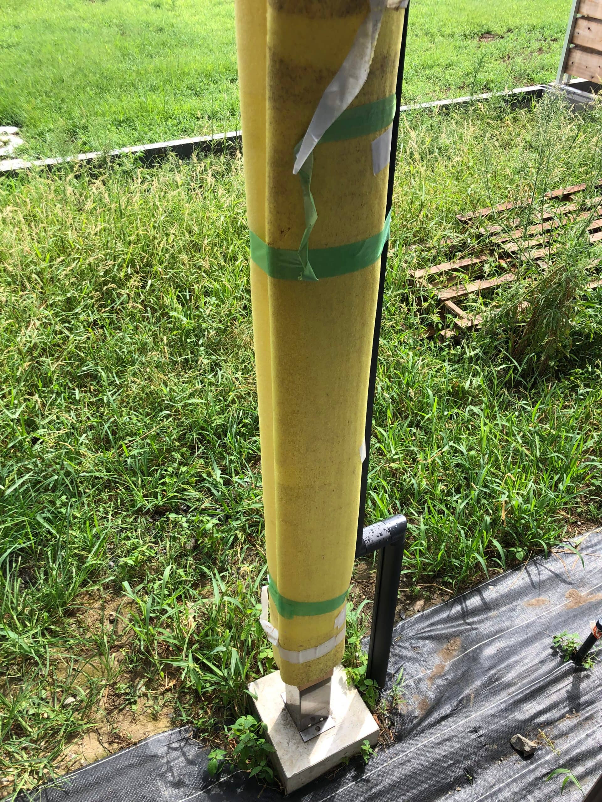 写真のように化粧柱へ養生をすることで、柱に傷や凹みなどがつくのを防いでいます。