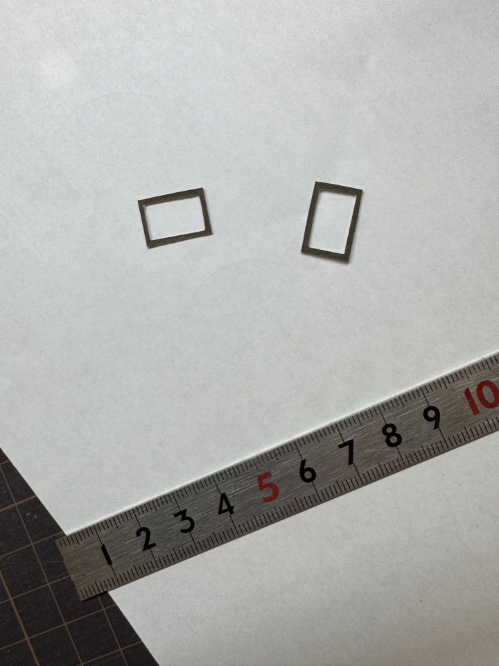 今回は色付きの模型なので、窓のサッシを作っているところですね。