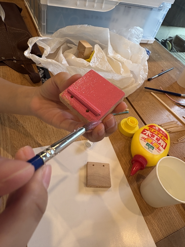 木に好きな色を塗ったり、ビーズや目玉をつけたり、一つだけのお手製カスタネットを作っていただけます。