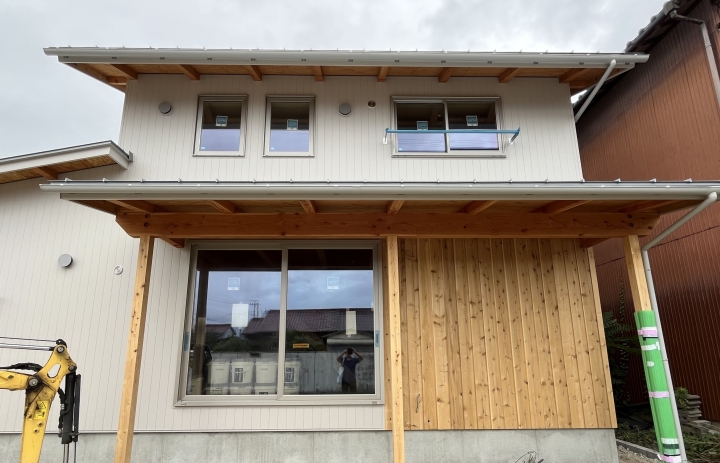 予算が許す限り天然の板張りも追加して、ガルバでも”らしくない”イメージになりました。