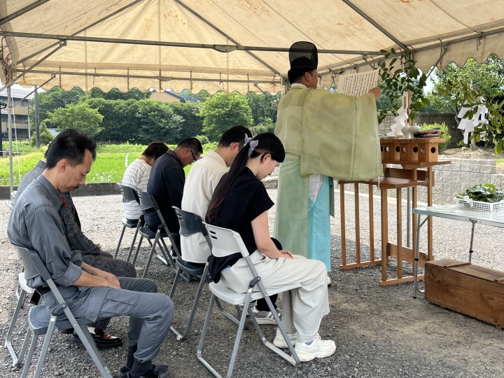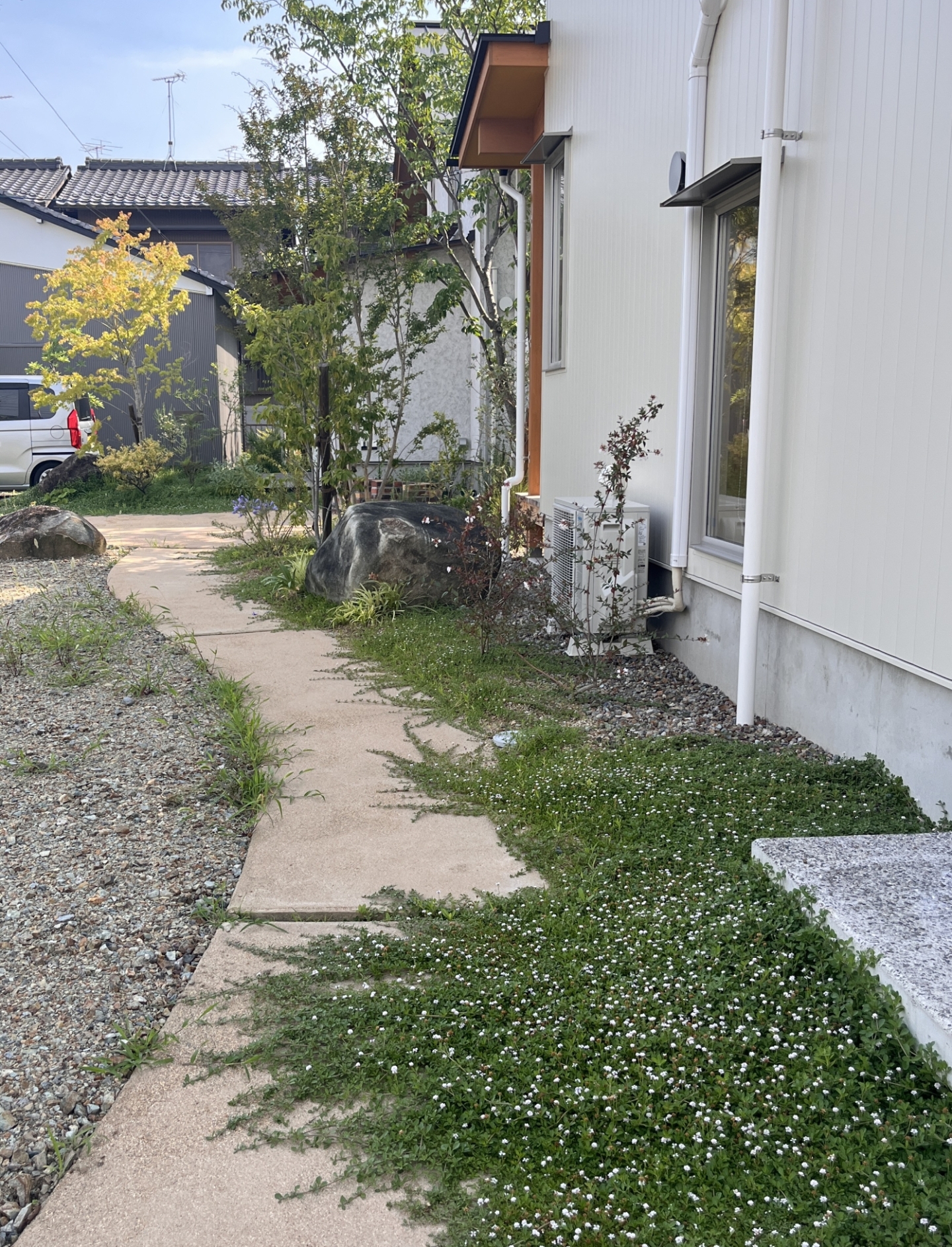 新事務所ではお客様駐車場はアスファルトでもコンクリートでもありません。
