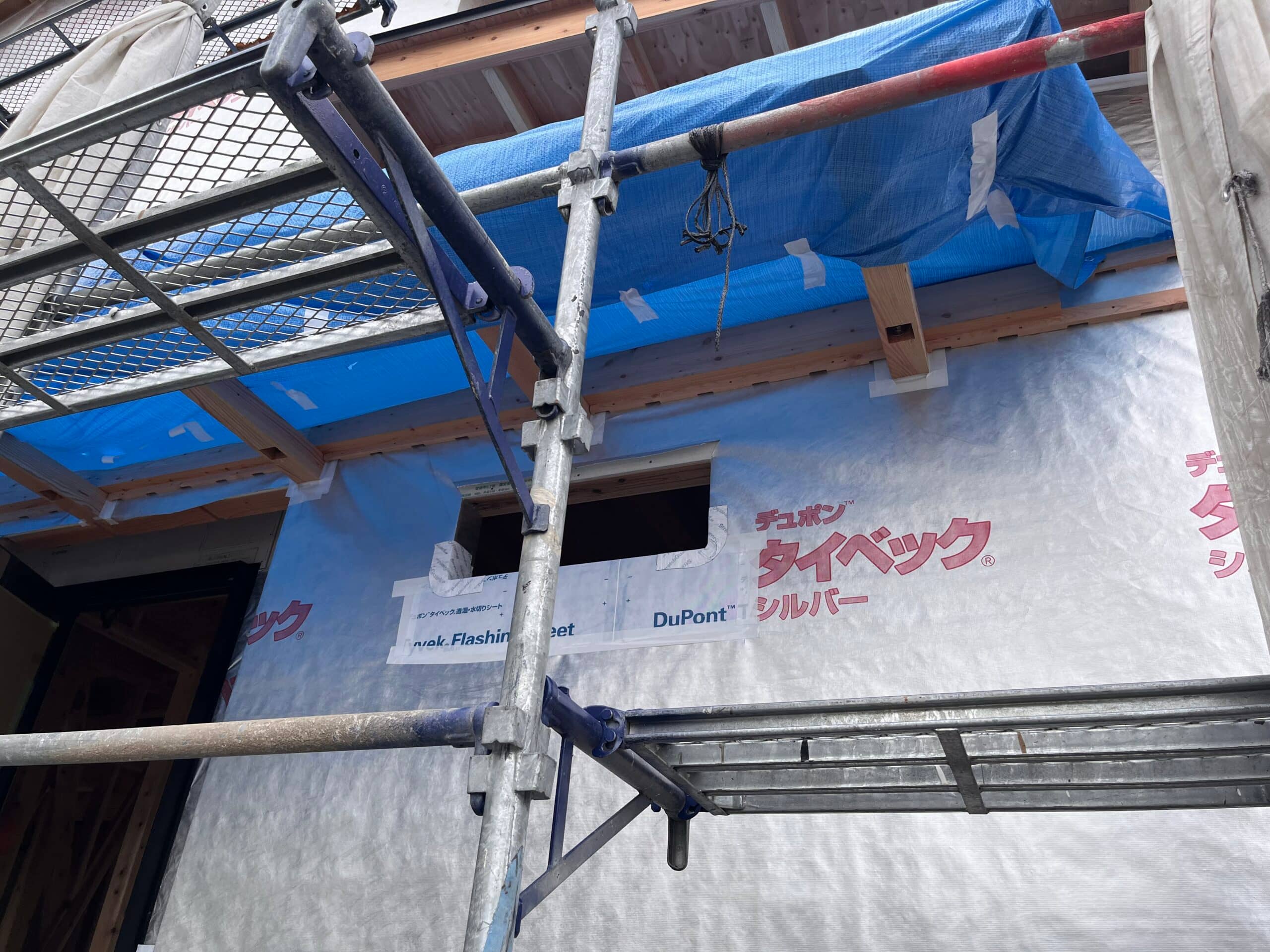 わかりにくいですが、上にあるのは玄関庇の下地です。