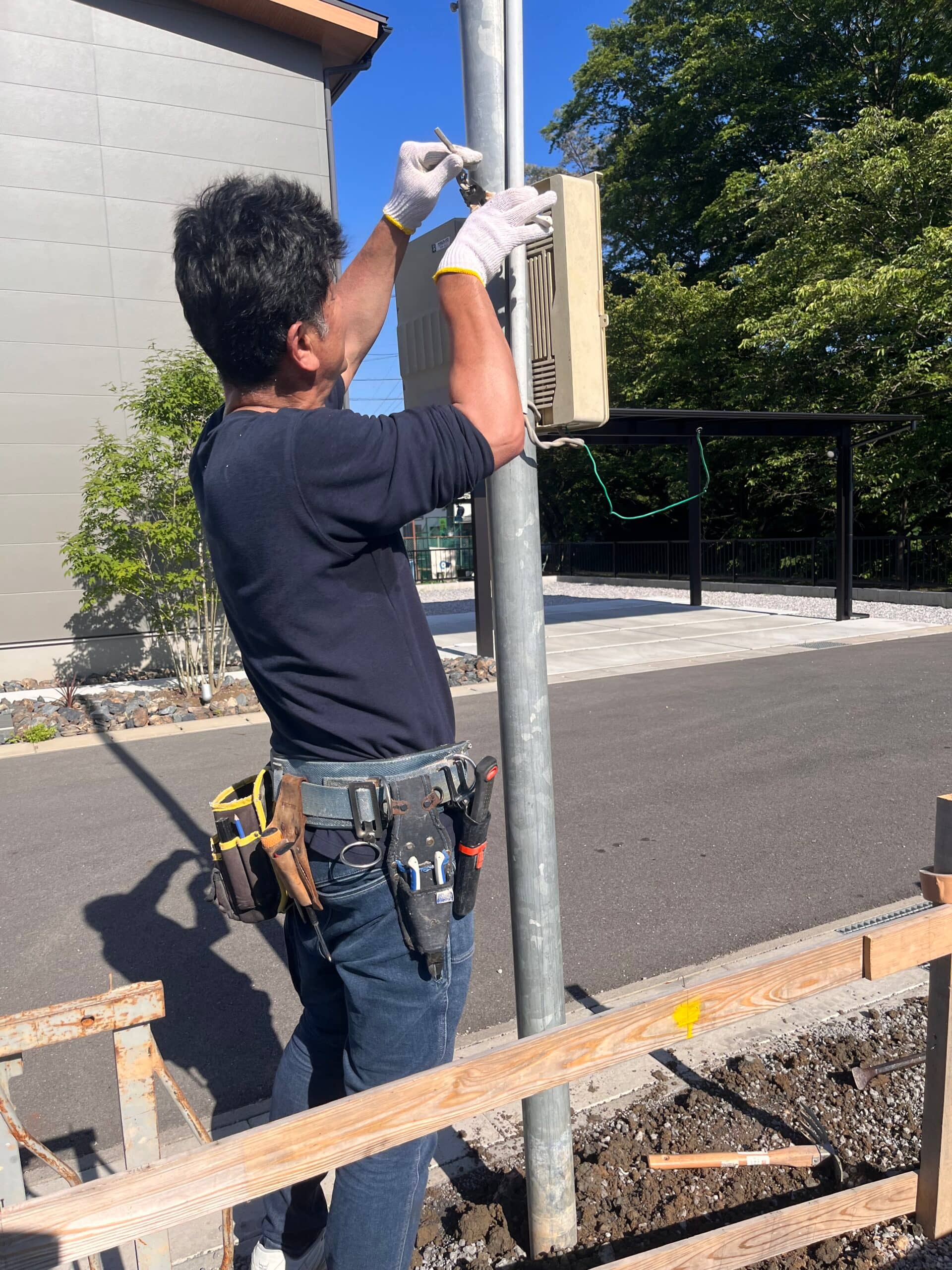 電気屋さんが仮設の電柱を立てに来てくださっていました。