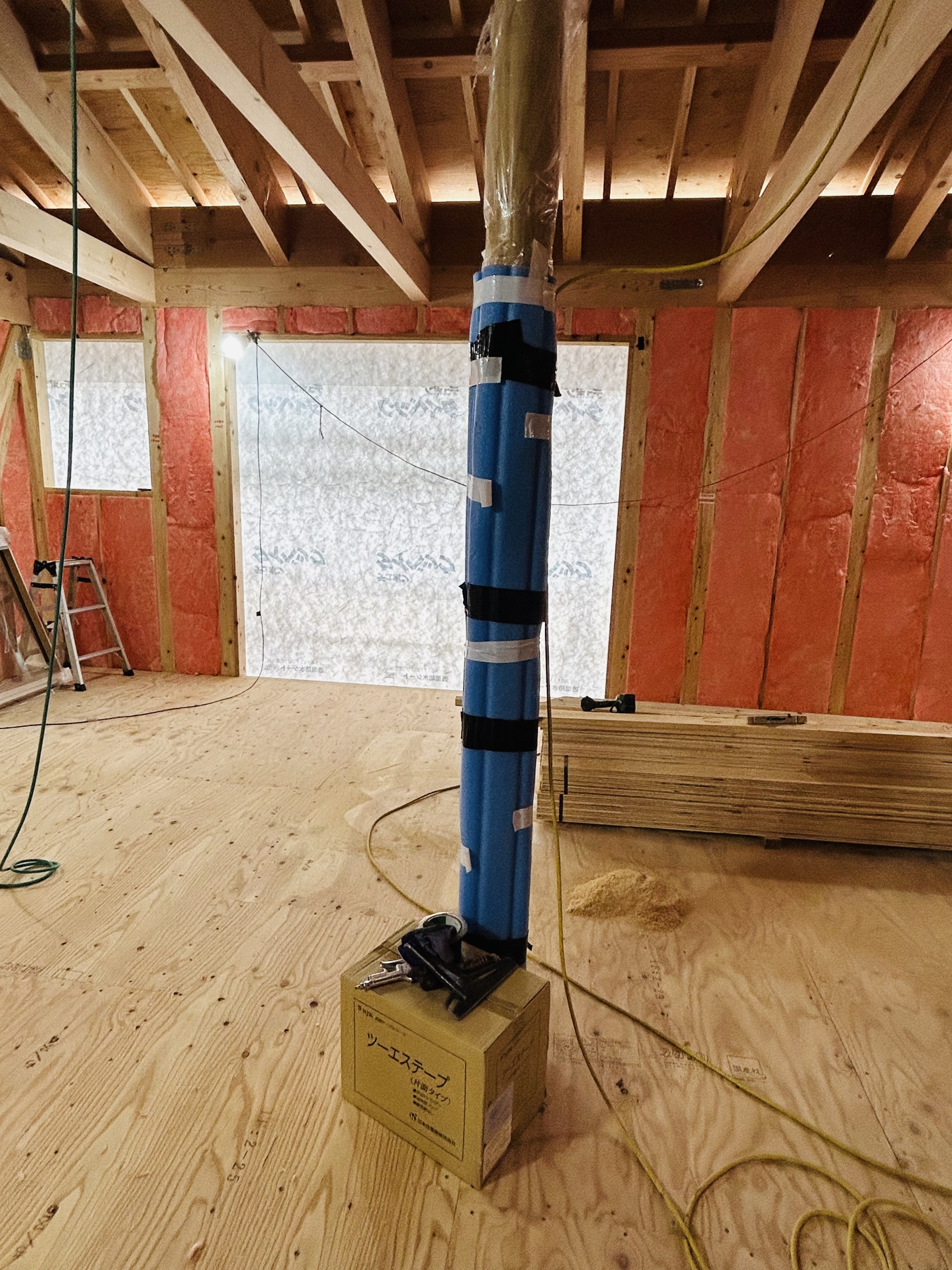 住宅の中心部分に施工されている化粧柱もしっかりと養生されていました。