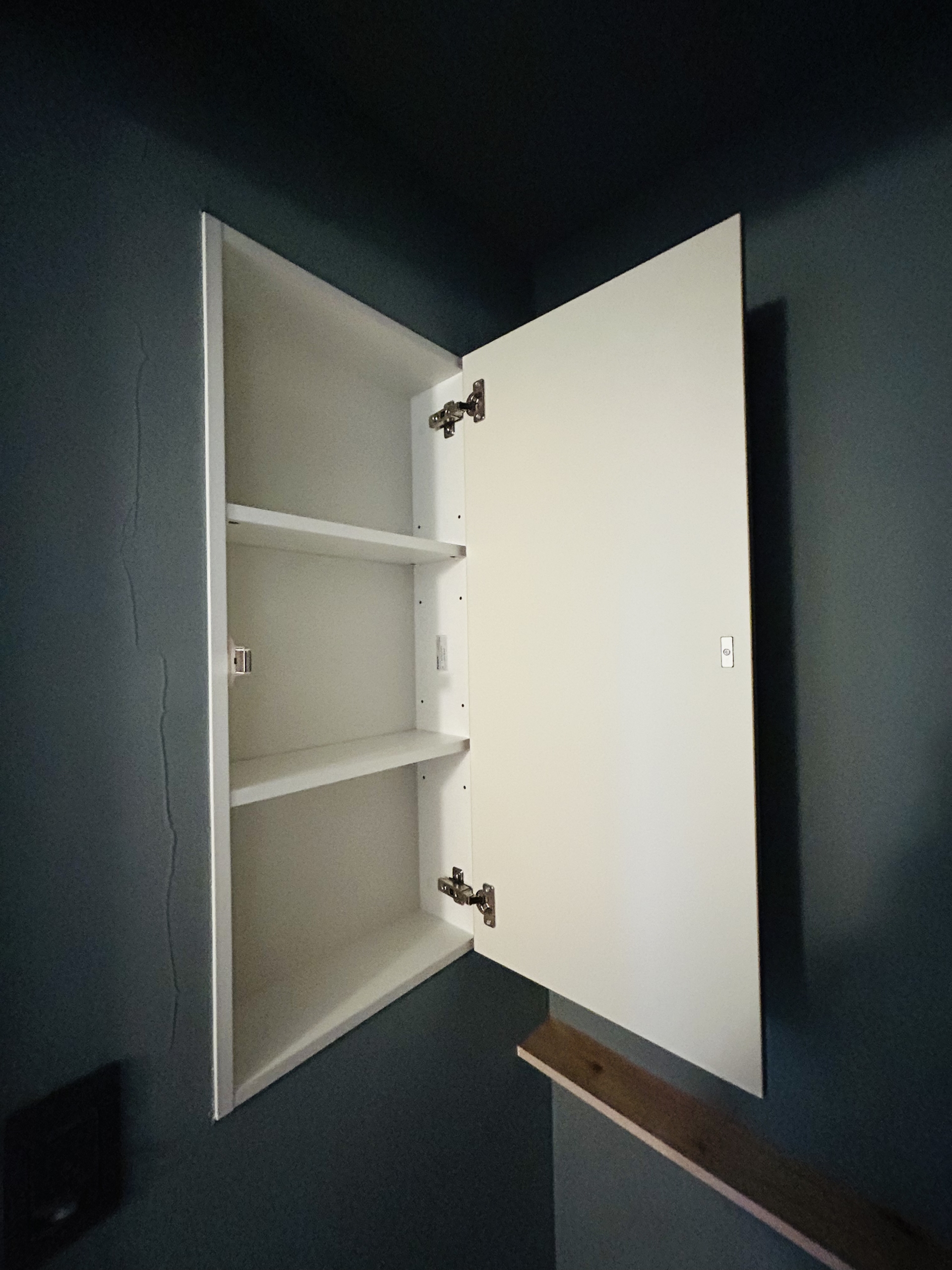 トイレ内の埋め込み収納は、清掃する小物が収納出来る様、コンパクトで場所を取らない雰囲気でした。