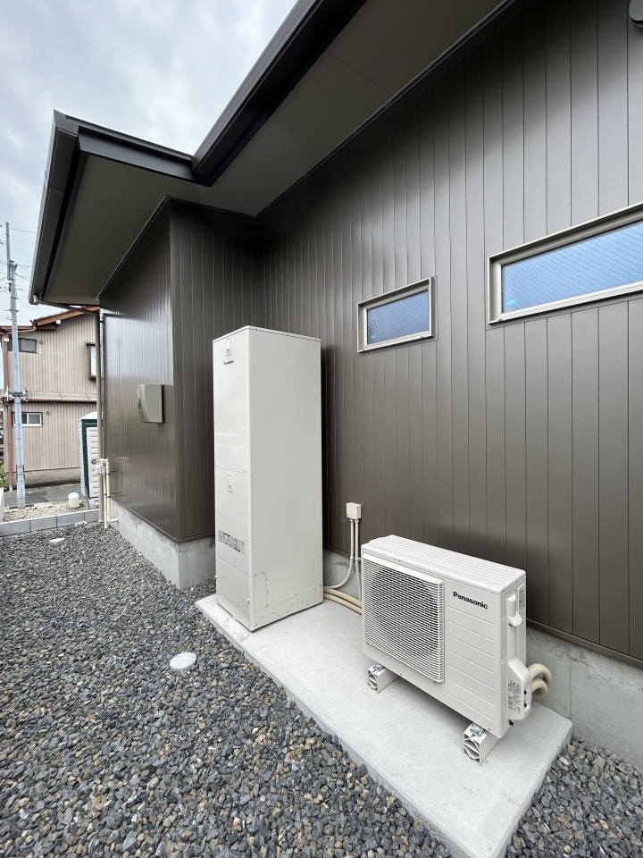 エコキュートの本体、ヒートポンプユニットも、均等に離隔がありスッキリとした仕上がりとなっていました。