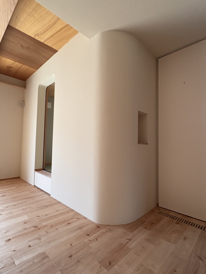 LDKと畳スペースの壁が、R形状となっていてニッチも際立ち感じのいい納まりでした。