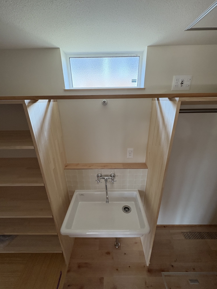 洗面所も手洗いシンクの頭上に窓が設けあり、照明が点灯していなくても自然光が差し込んでいました。