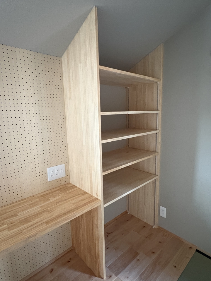 可動棚の左側のカウンターは、LANの差込口があり、パソコンを使用するスペースとして確保されていて、