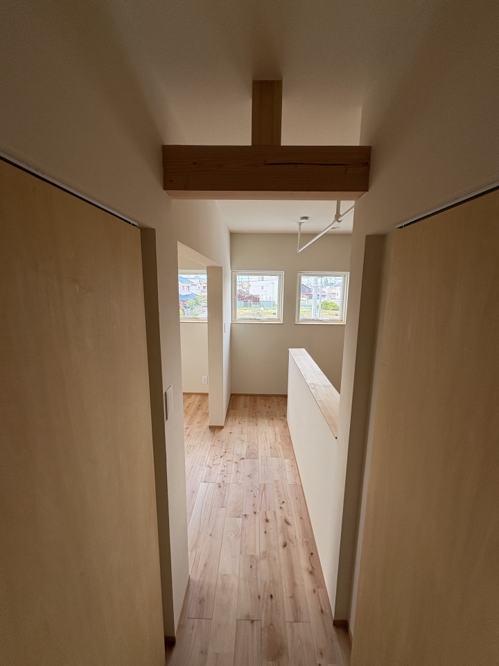 F様邸の2Fへ行くと、天井が屋根の勾配に添って、フラット、勾配天井のコラボとなっていました。