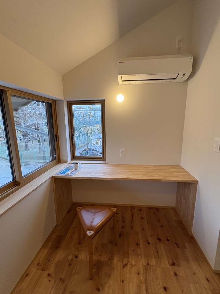 洋室には、造作机が設置されていて、机の幅、奥行きが広々としていました。