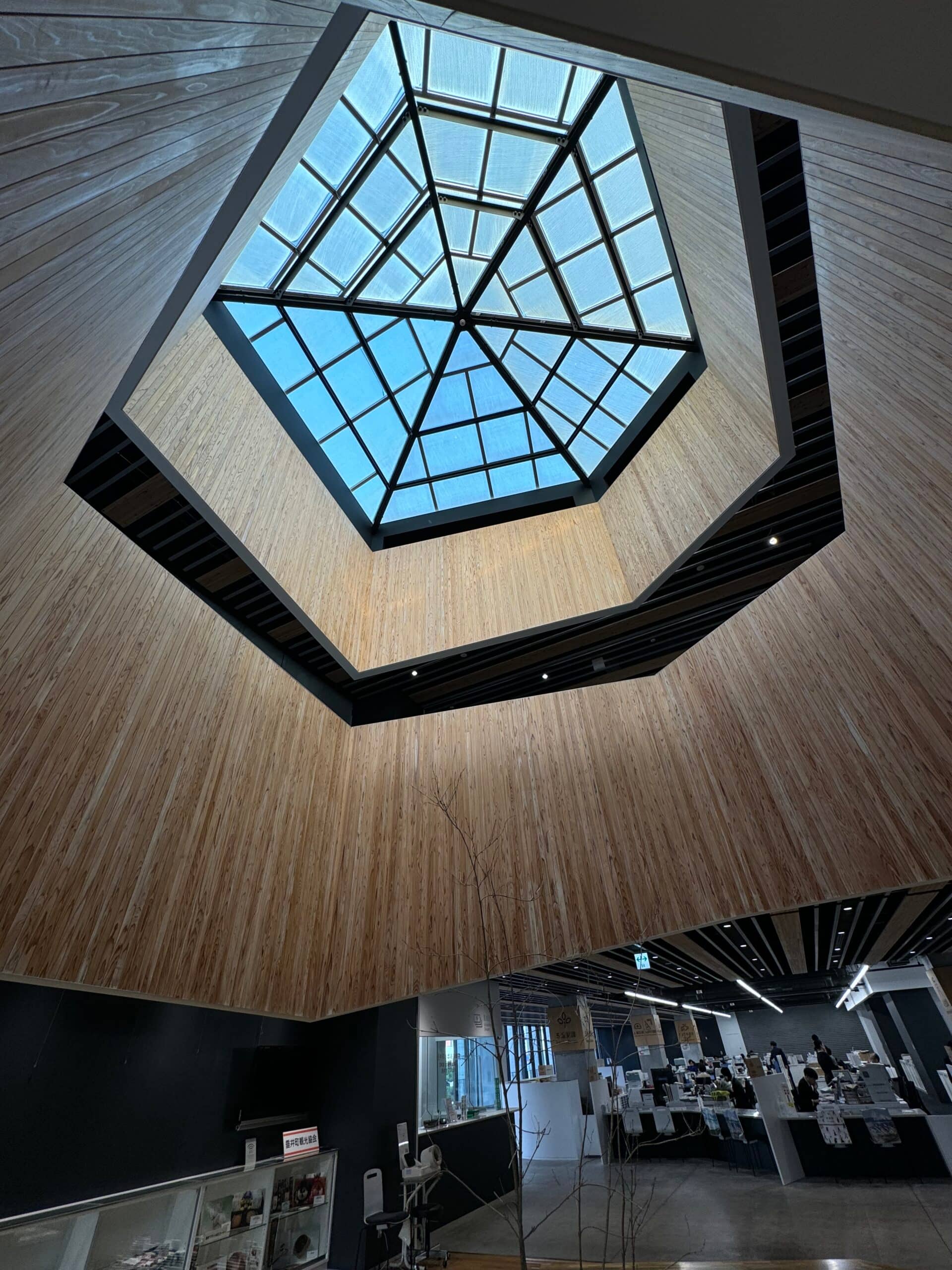 写真のようなトップライトを設けた吹き抜けもあり、自然光や風を取り入れることができるそうです。