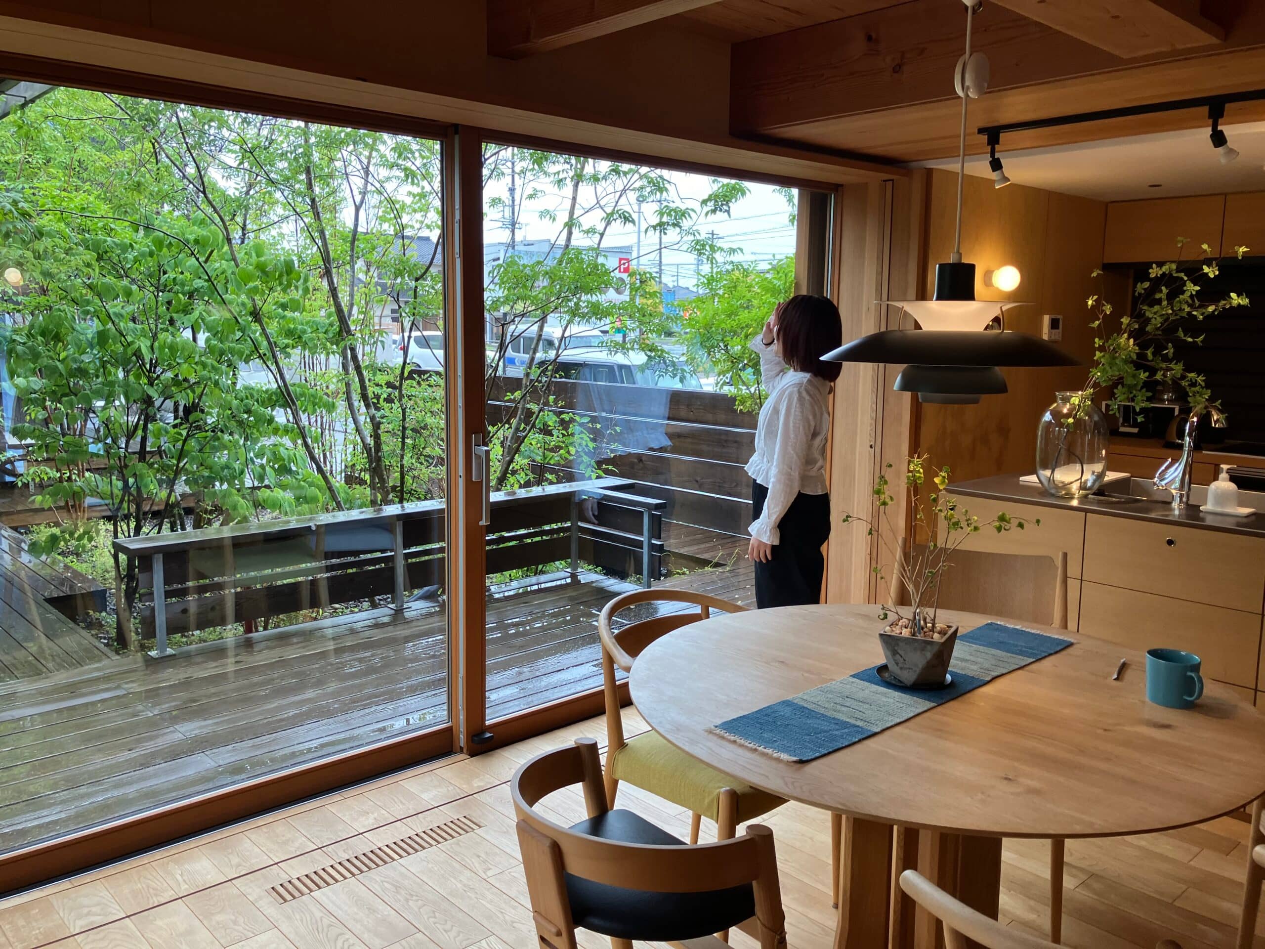 それと事務所の庭を眺める北川さん。