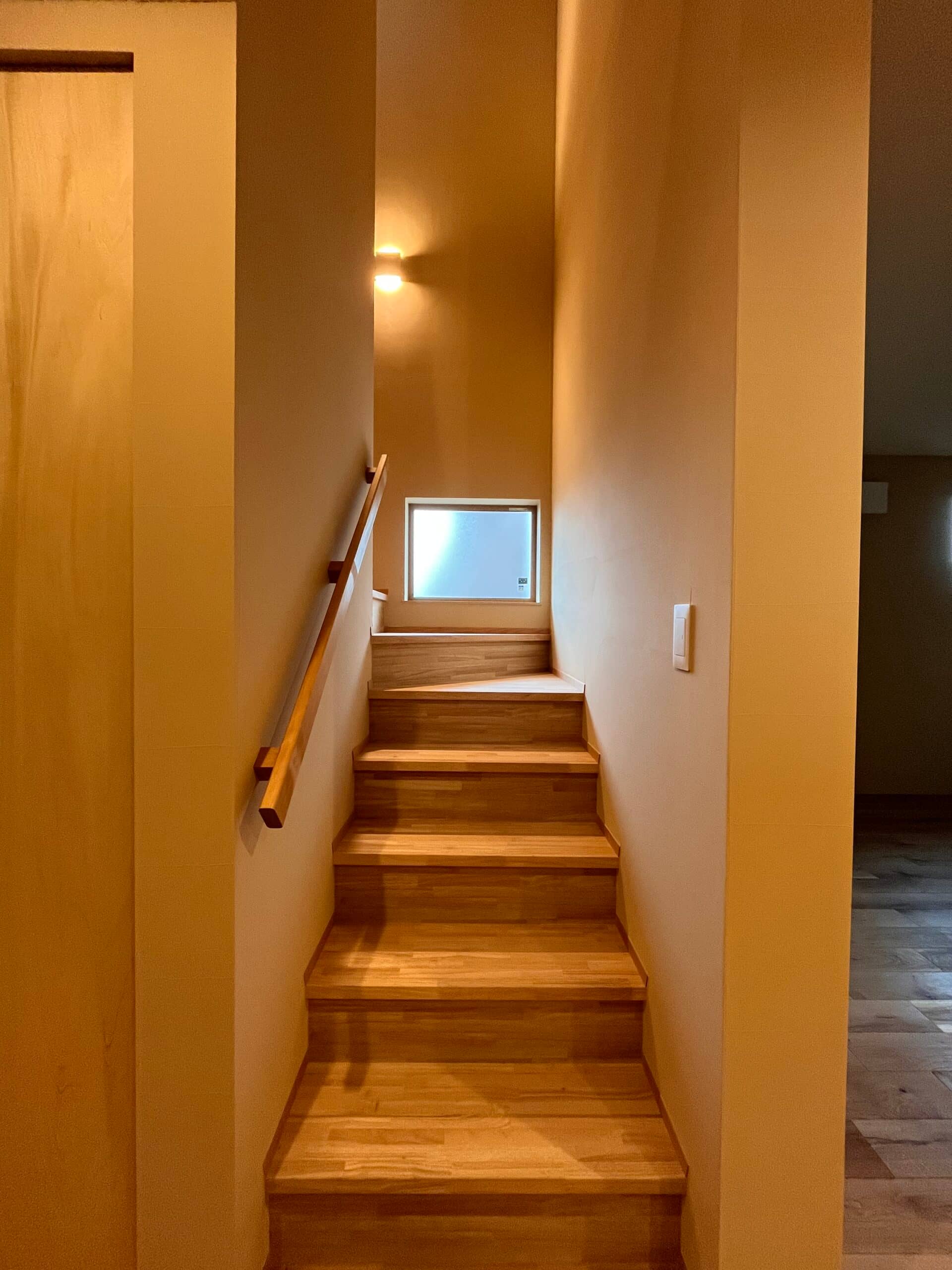 階段の途中の足元に明り取りで窓を付けていただいたのですが