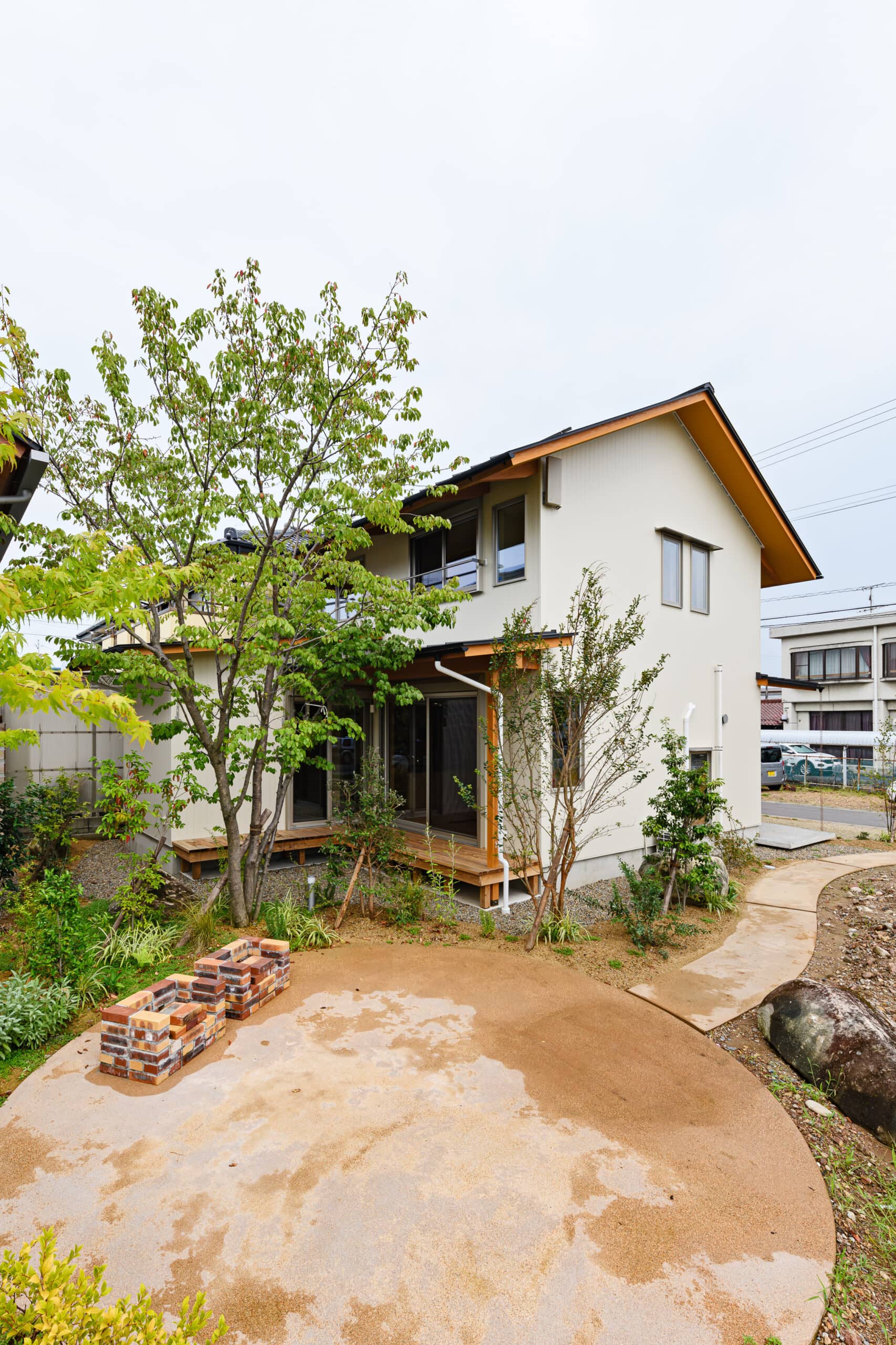 エムズではおなじみオレンジ系の軒天がいいアクセントになっています。