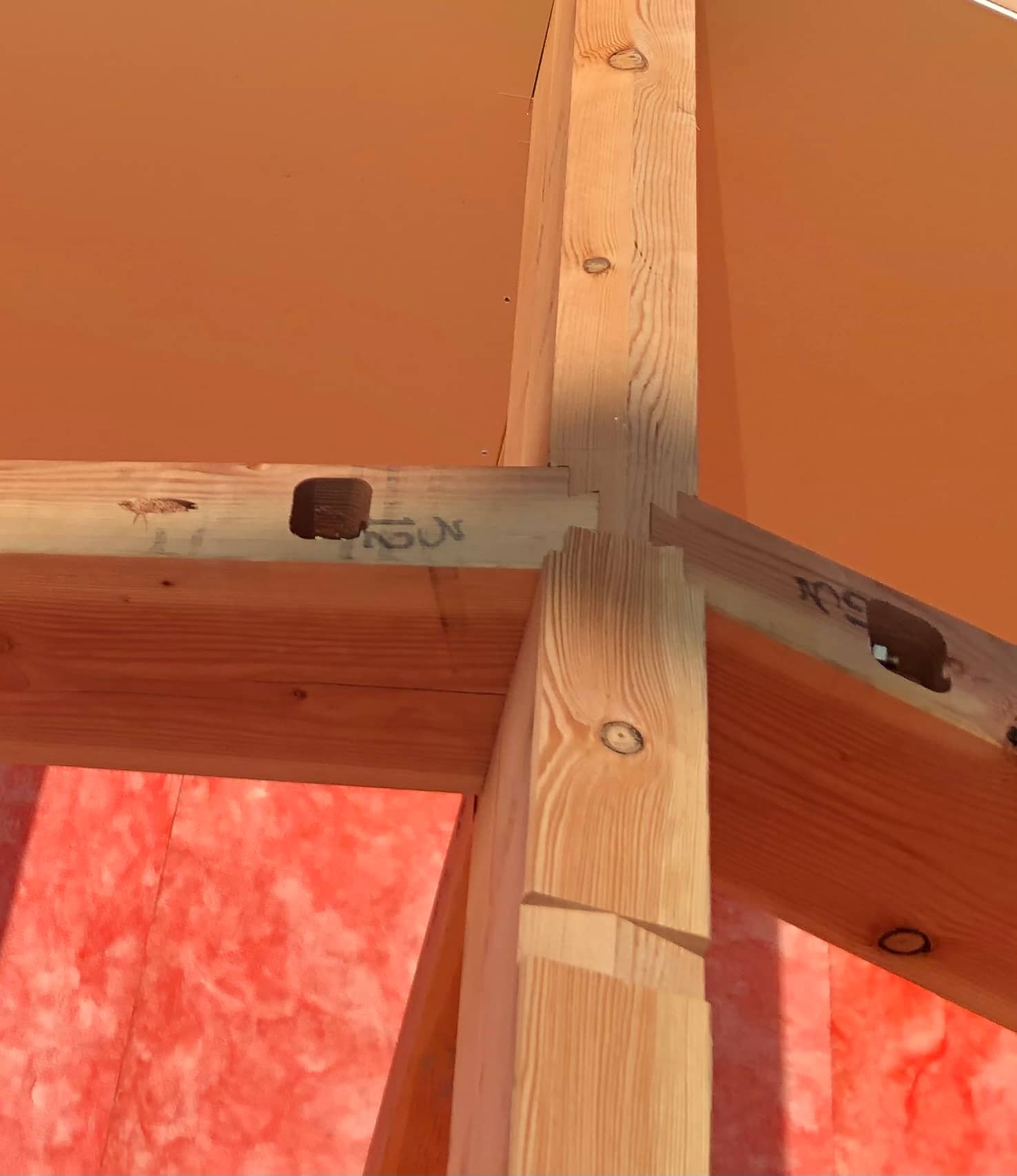 こちらの写真の中心のTの字になっている横架材を固定するのに使われているものが、