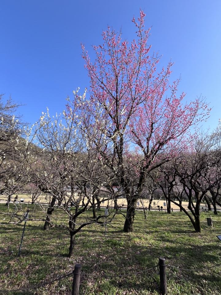 先日、通勤途中に梅林公園をのぞいてみると、梅の花がきれいに咲いていました。