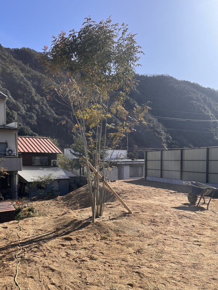 南のお庭には工事前に植えたシマトネリコがいくらか大きくなってたっていました。