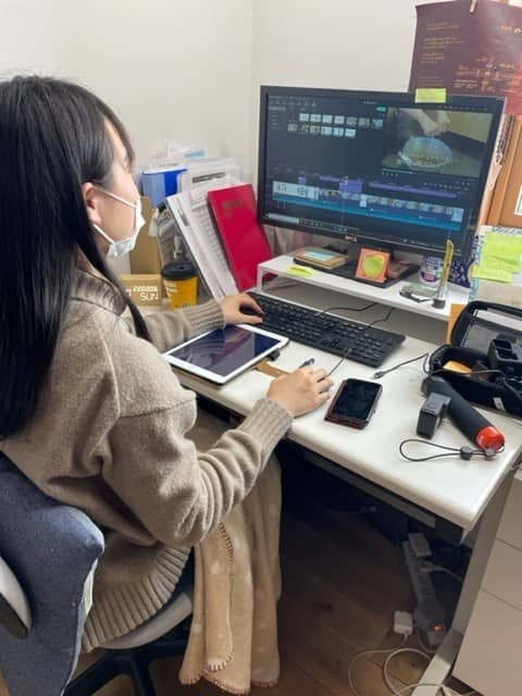 ▼広報の吉澤さんがメンテナンス用の案内動画を編集している所。
