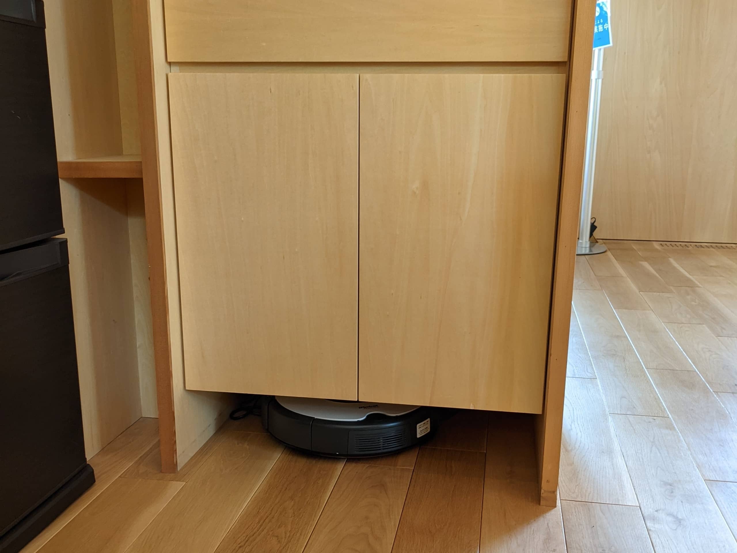 先ほどのレンジフードと棚との統一感があり、冷蔵庫の圧迫感が和らいで落ち着いて見えます。