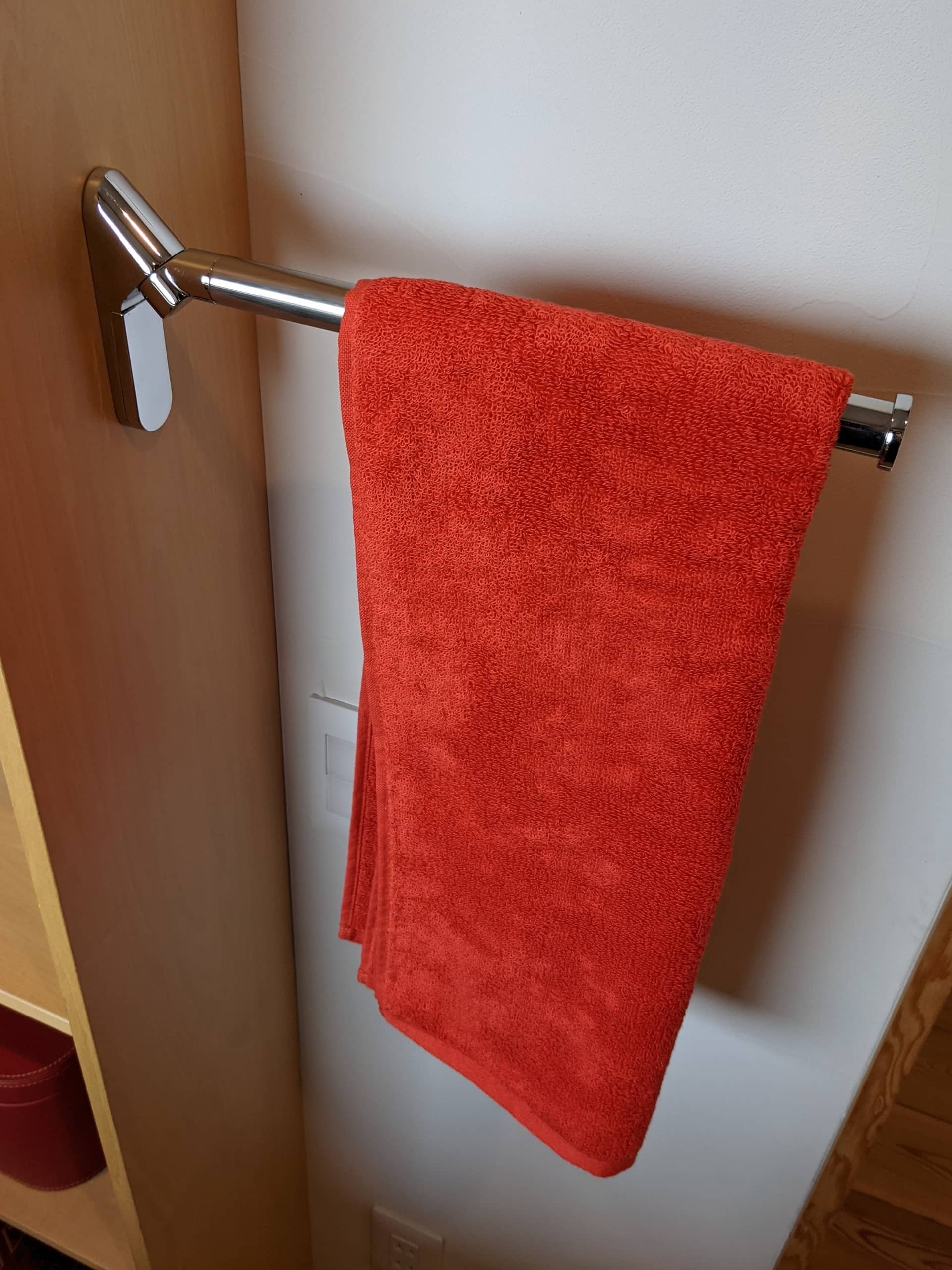 向かいに洗面台、横にお風呂や脱衣所、洗濯機などががあるのですが、こうした何気なく掛けられる場所があるのは嬉しいです。 収納もできて◎です。