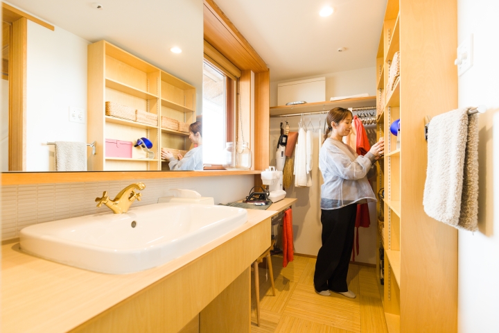 乾いた洗濯物は、2階のウォークインクローゼットにそのまま仕舞うことができ、毎日の洗濯がストレスフリーに。