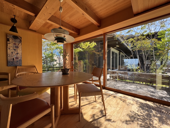 食後にウッドデッキへ出れば、澄んだ冬の空気の中で星がひときわ輝きます。