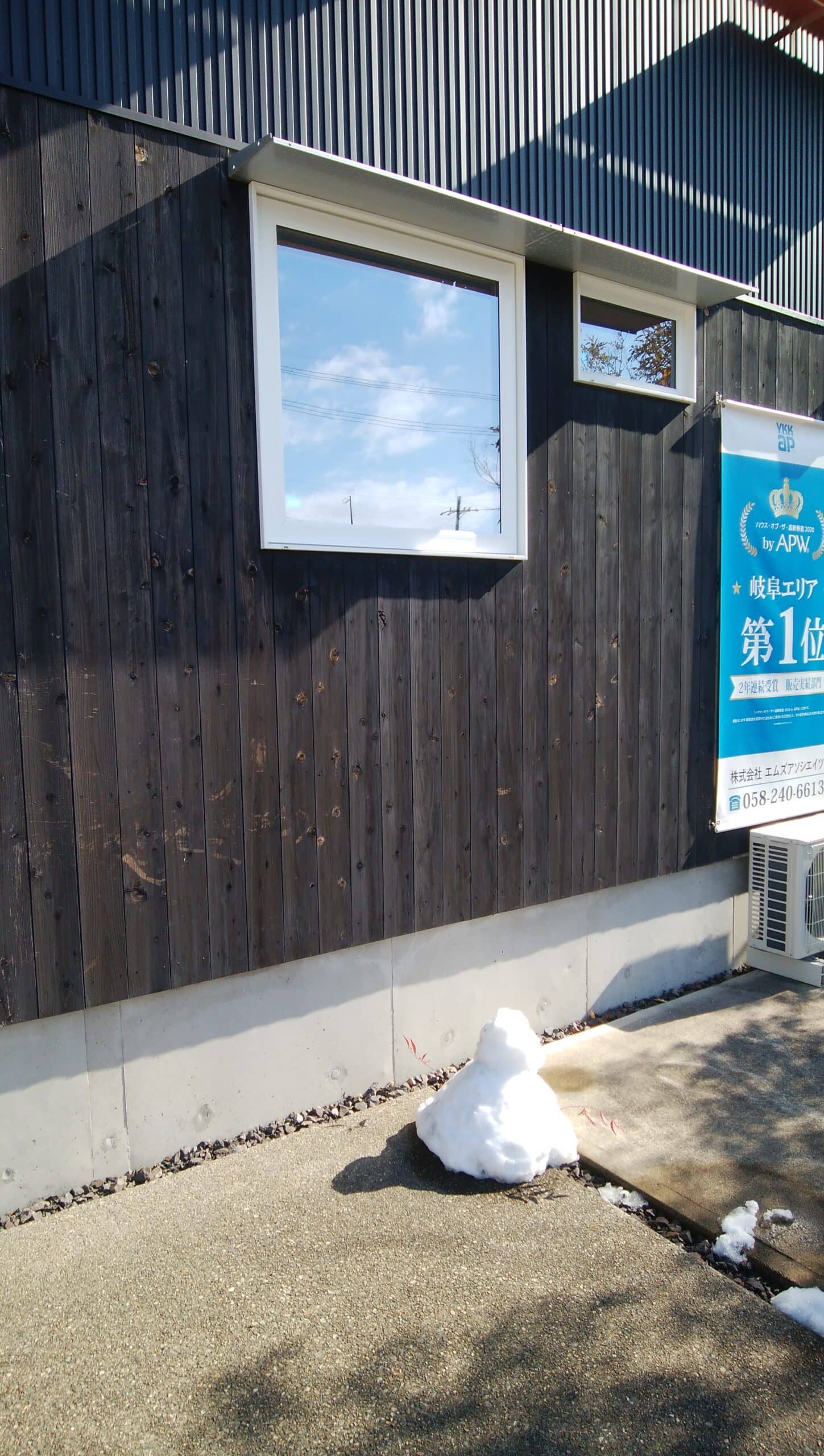 事務所棟前のお迎え雪だるま。