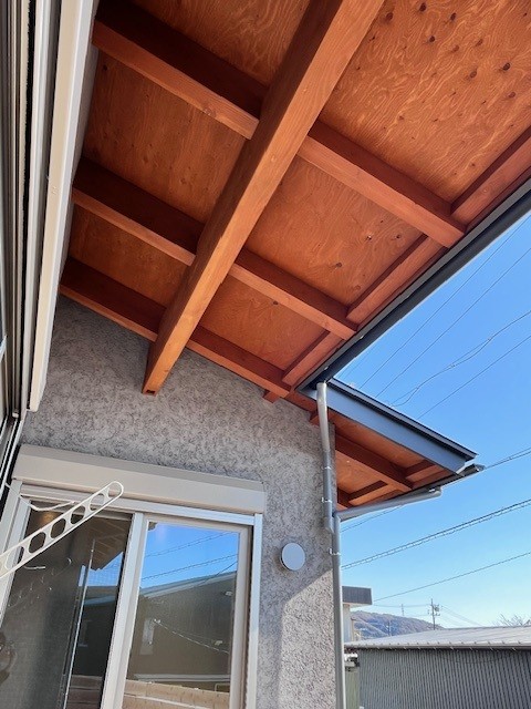 外観はそとん壁に針葉樹合板の軒裏がとても合っていました。