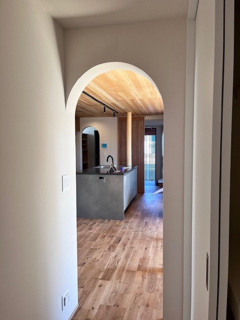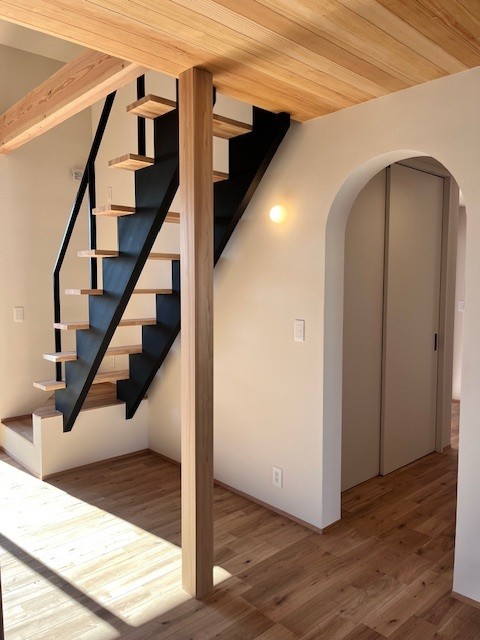 オープン階段とR垂れ壁です。