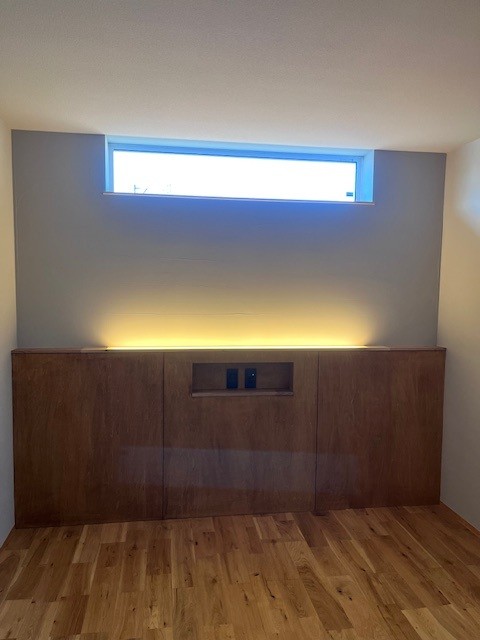 腰壁の天板に埋め込んだ間接照明も印象的です。