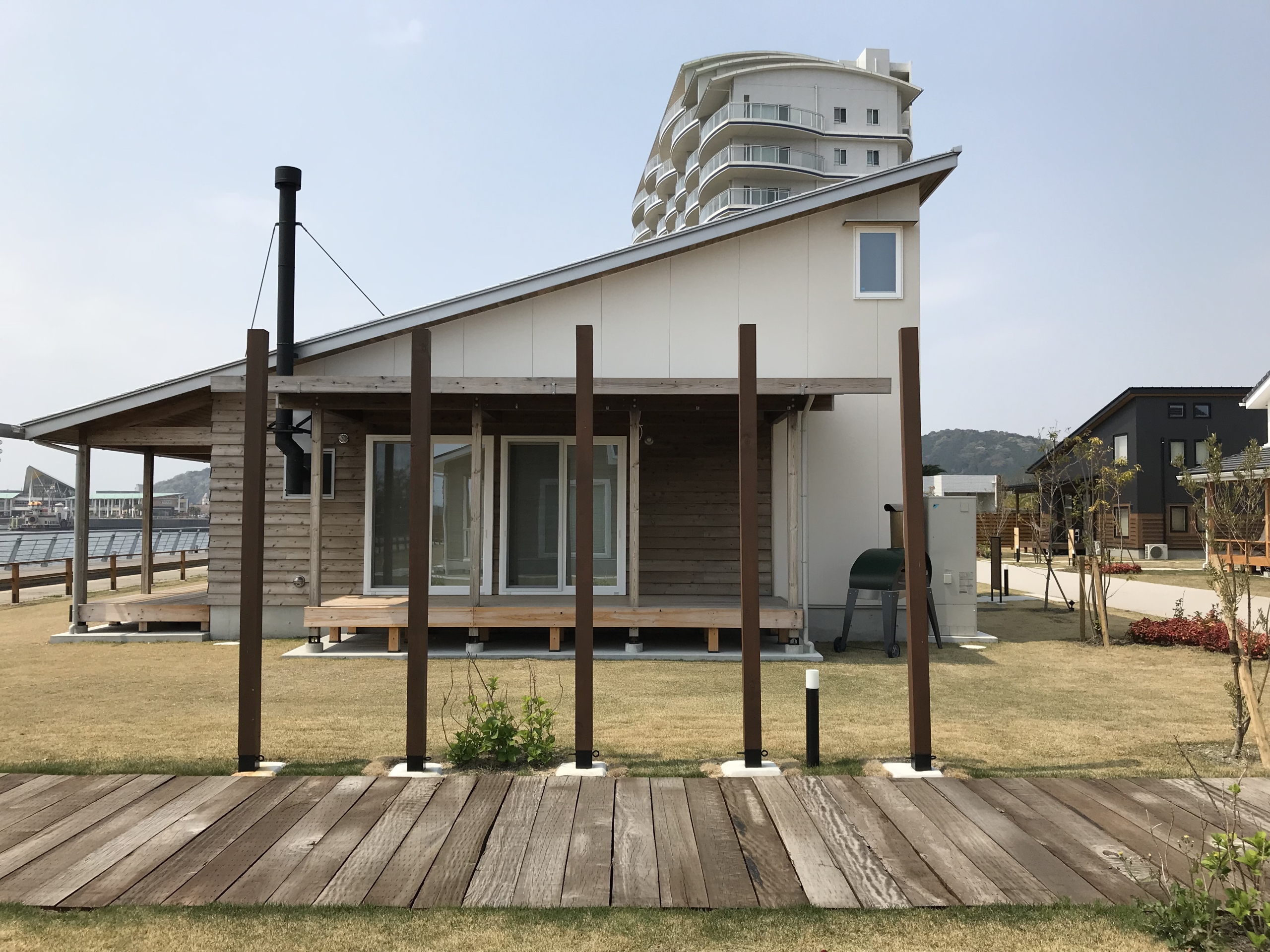 海沿いのホテルと肩を並べて佇むモデルハウス郡 いいですね~