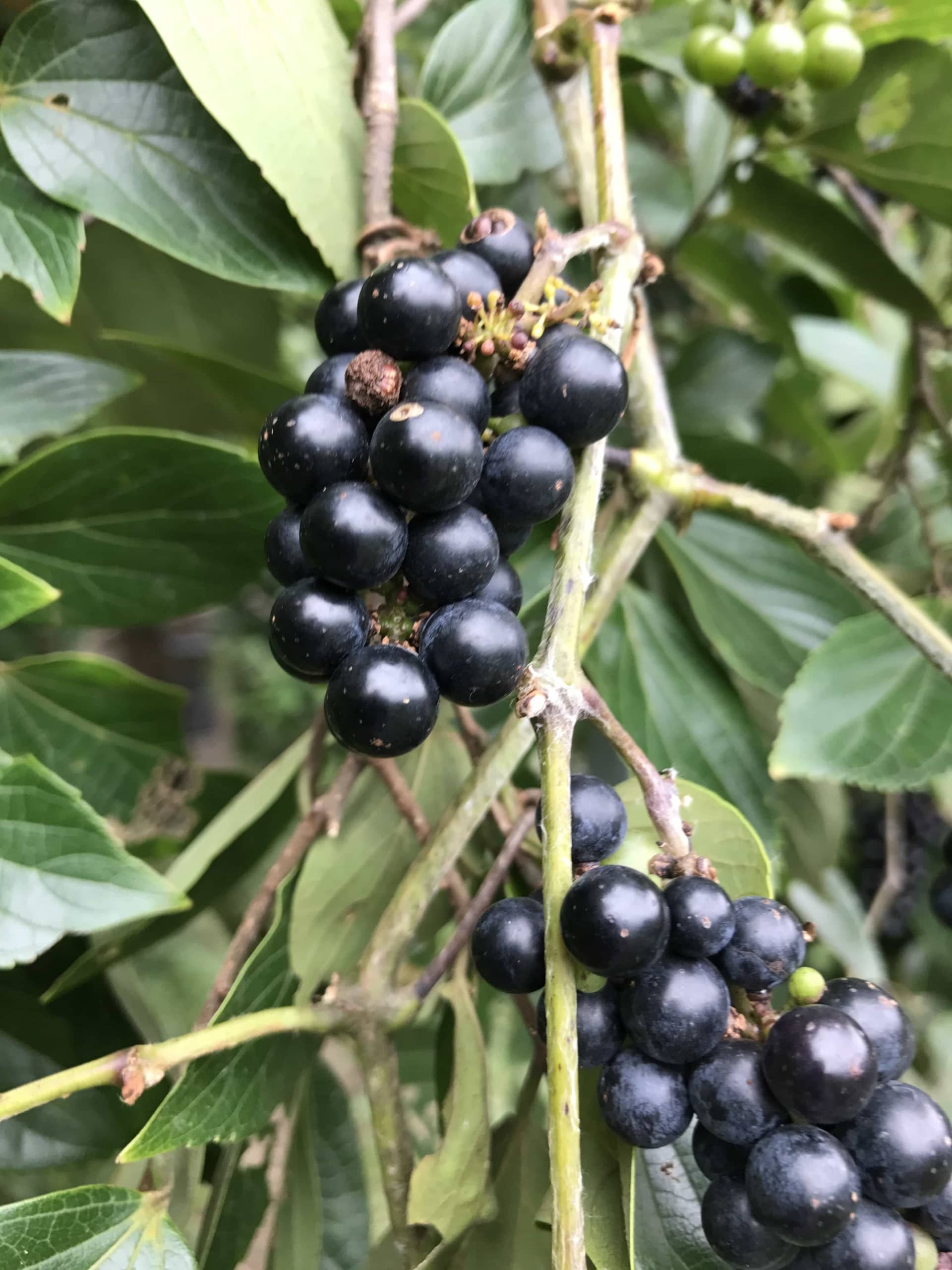やまぶどうも食べました。これが結構ぶどうでした。 昔は、食べるものがないときは、この汁を吸ってしのいだそうです!